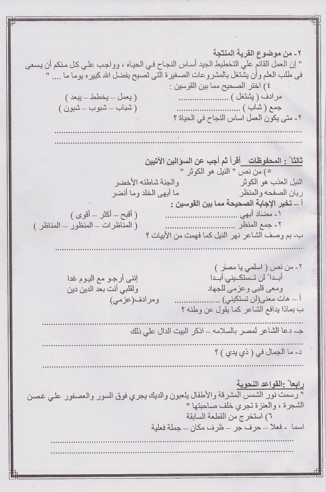 اللغة العربية الإسكندرية - امتحان اللغة العربية والإملاء للصف الثالث الإعدادى للفصل الدراسى الثانى - الدور الأول 2015 ...